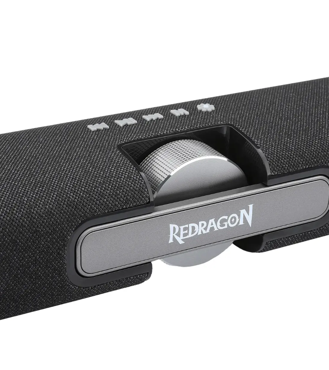 اسپیکر گیمینگ ردراگون Redragon DORA GS512 RGB طراحی به شکل ساندبار دارد که باعث می‌شود فضای کمی روی میز اشغال کند.