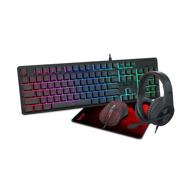 باندل گیمینگ هدست و کیبورد و موس و موس پد ردراگون Essentials S107P-BA طوری طراحی شده که هر چهار قطعه از نظر ظاهر، نورپردازی و عملکرد با هم هماهنگ هستند. این موضوع باعث میشود میز گیمینگ شما نظم و زیبایی خاصی پیدا کند. اگر تازهکار هستید یا قصد دارید یک ست کامل گیمینگ بدون نیاز به خرید جداگانه تهیه کنید، این باندل انتخابی ایدهآل است.