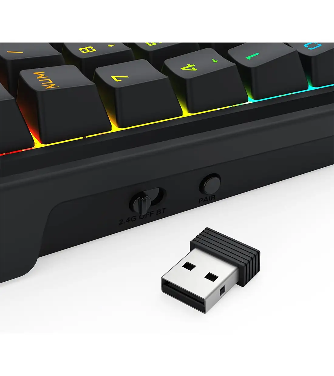 نورپردازی RGB علاوه بر زیبایی، در محیط‌های کم‌نور نیز باعث می‌شود کلیدها کاملاً قابل مشاهده باشند و تجربه کاربری بهتری ارائه شود.