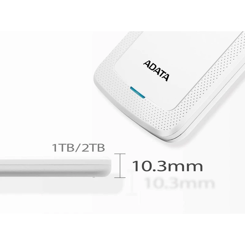 هارد اکسترنال ای دیتا مدل HDD HV300 Slim-1TB به راحتی در جیب پشتی شما جا میشود. این هارد در رنگهای ، سفید، و قرمز عرضه شده است. هارد HV300 دارای سنسورهای شوک است که در صورت تشخیص ضربه یا لرزش با چراغ نشانگر قرمز به شما اطلاع میدهد.