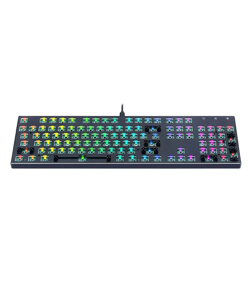 یکی از مزایای اصلی این کیت امکان Hot-Swap سوئیچ‌ها است؛ به این معنی که بدون نیاز به لحیم‌کاری می‌توان سوئیچ‌ها را به راحتی تعویض کرد. این ویژگی به شما اجازه می‌دهد هر زمان که خواستید، تجربه تایپ و گیمینگ خود را با سوئیچ‌های مختلف بهینه کنید. همچنین امکان نصب کی‌کَپ‌های مختلف از نظر رنگ، جنس و ضخامت فراهم است تا بتوانید ظاهر کیبورد را به طور کامل شخصی‌سازی کنید.