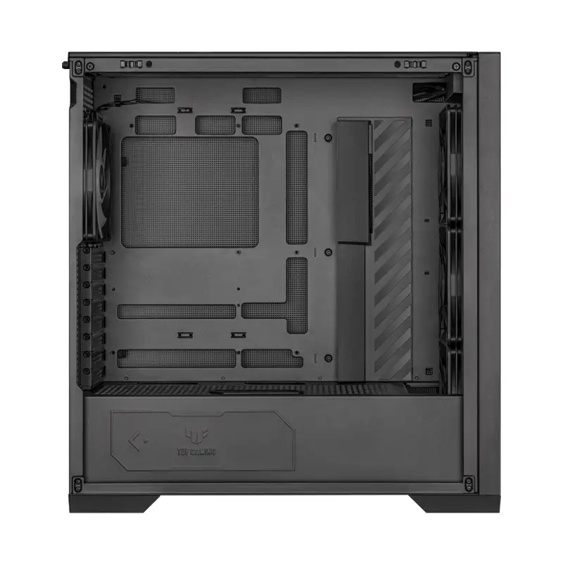 پنل کناری کیس ایسوس از جنس شیشه حرارتدیده (Tempered Glass) است که با ضخامت بالا و مقاومت عالی در برابر ضربه ساخته شده است. این طراحی به شما اجازه میدهد تا نورپردازی داخلی، فنهای ARGB و جزئیات دقیق سختافزار خود را به نمایش بگذارید.
